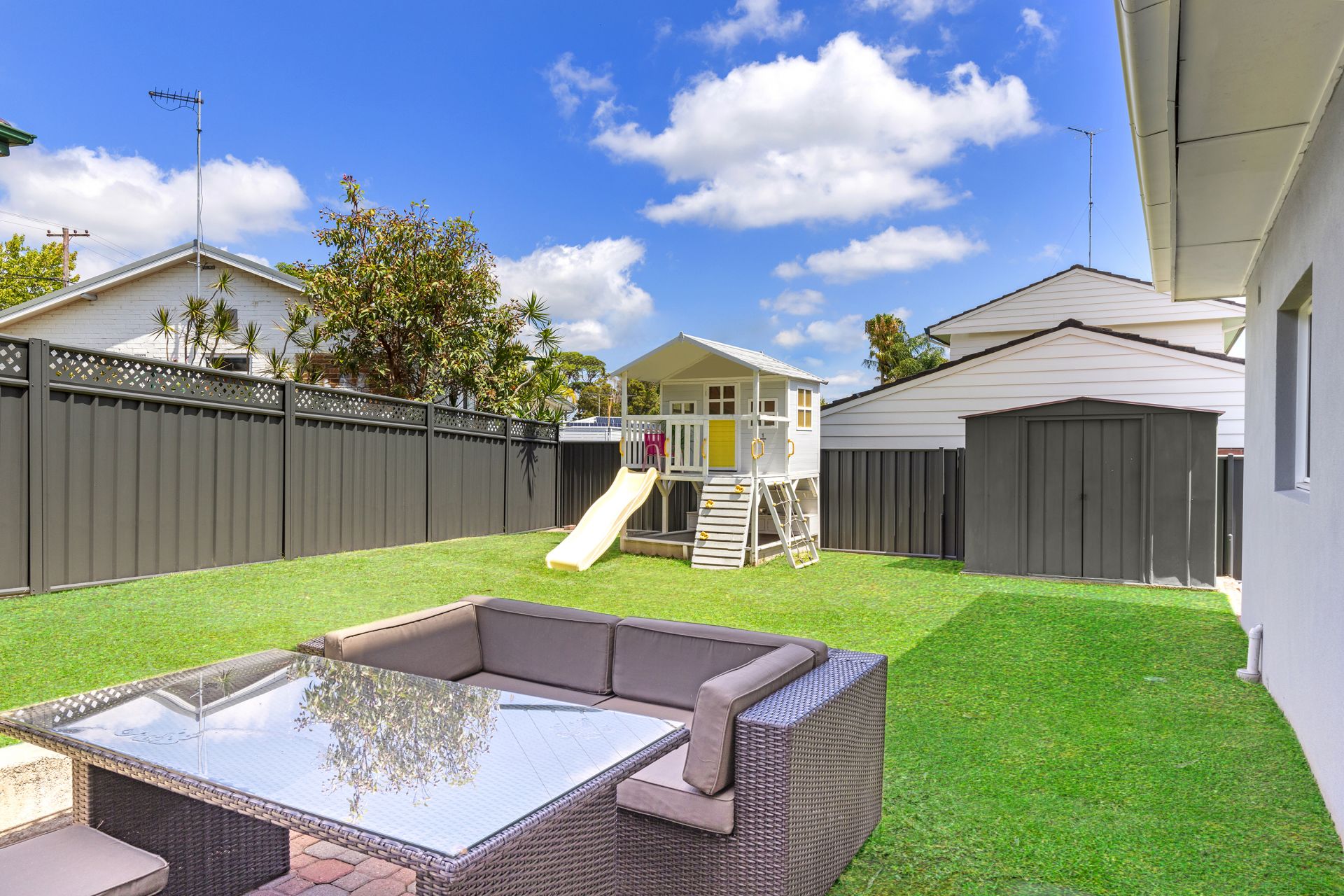 • Low-maintenance child-friendly grassed yard