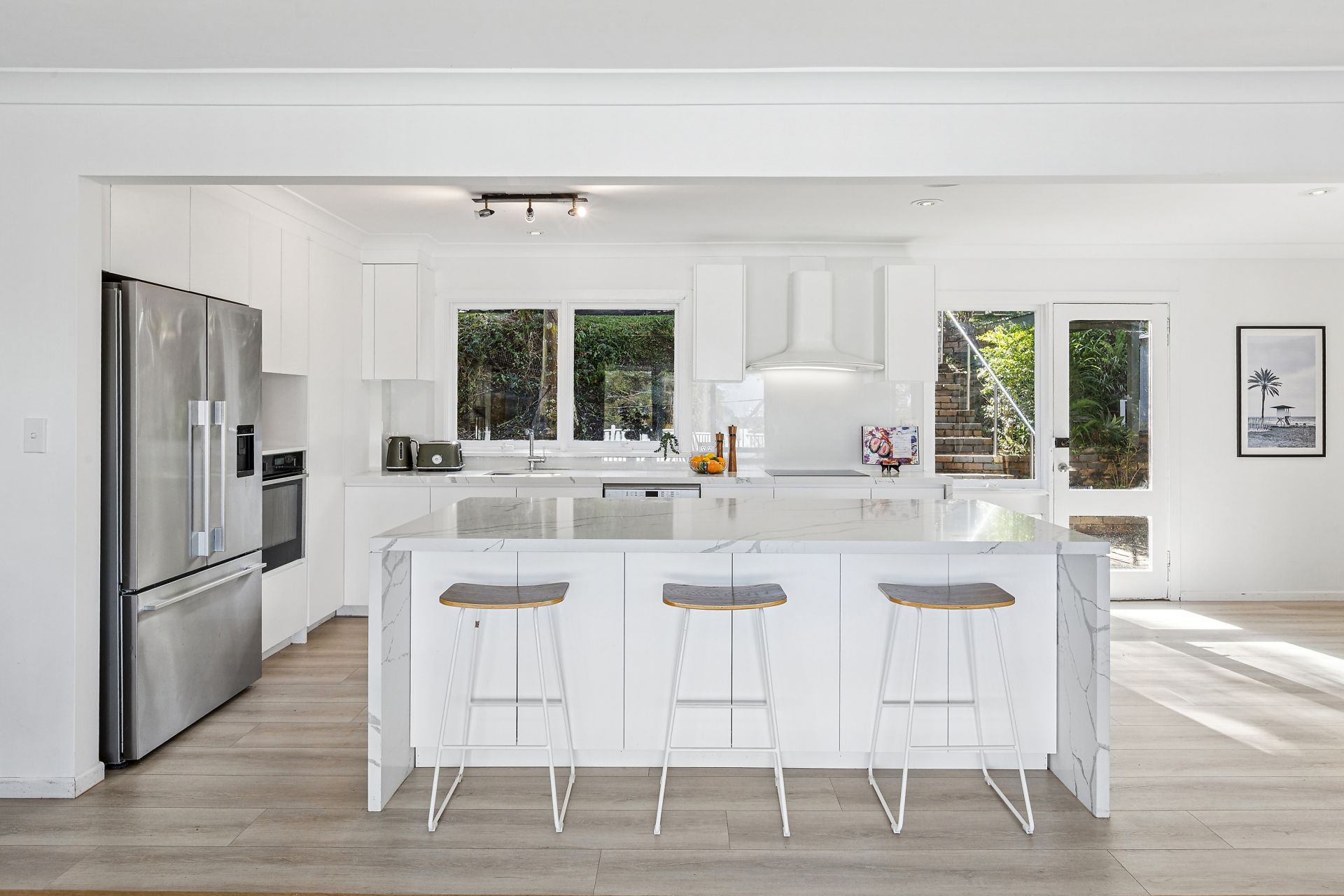• Stylish renovated open plan kitchen with 40mm stone bench tops and large island opening to a private courtyard